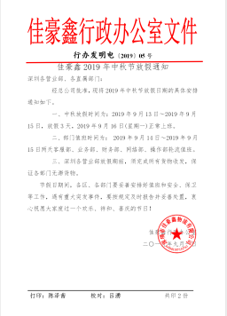 佳豪鑫中秋放假通知