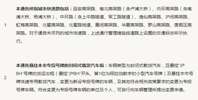 上海:符合規定的貨車(chē)可上高架通行(除法定節假日外)