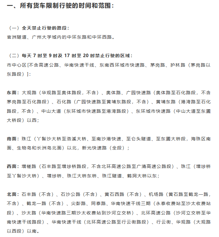 自10月1日起,廣州將實(shí)施最新的市內貨車(chē)限行政策,具體如下: